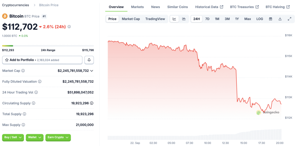 Bitcoin remains the dominant force in crypto markets, currently trading at $112,702, marking a slight 0.12% daily decline. Its market capitalization stands at $2.3 trillion, underlining its unmatched role in digital finance.