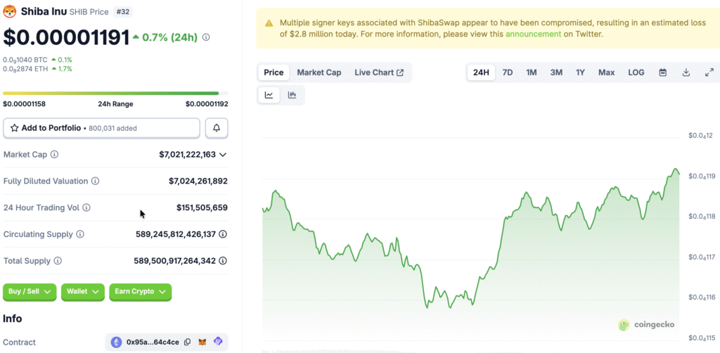 Shiba Inu Holds Key Support Level Amid Market Volatility